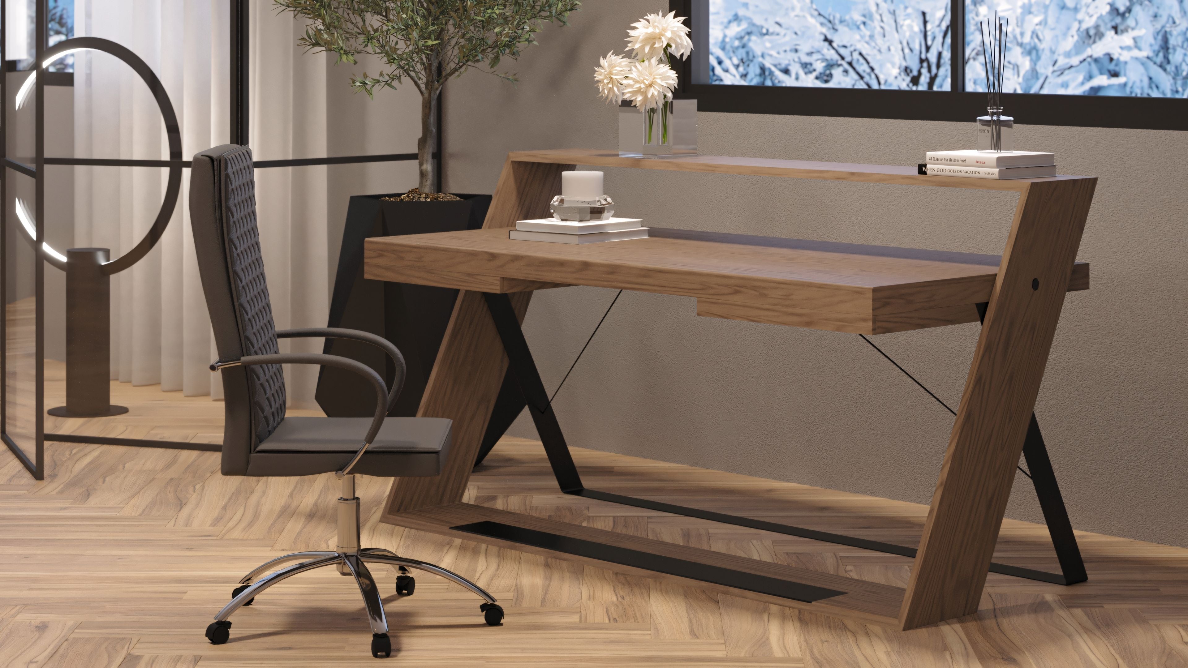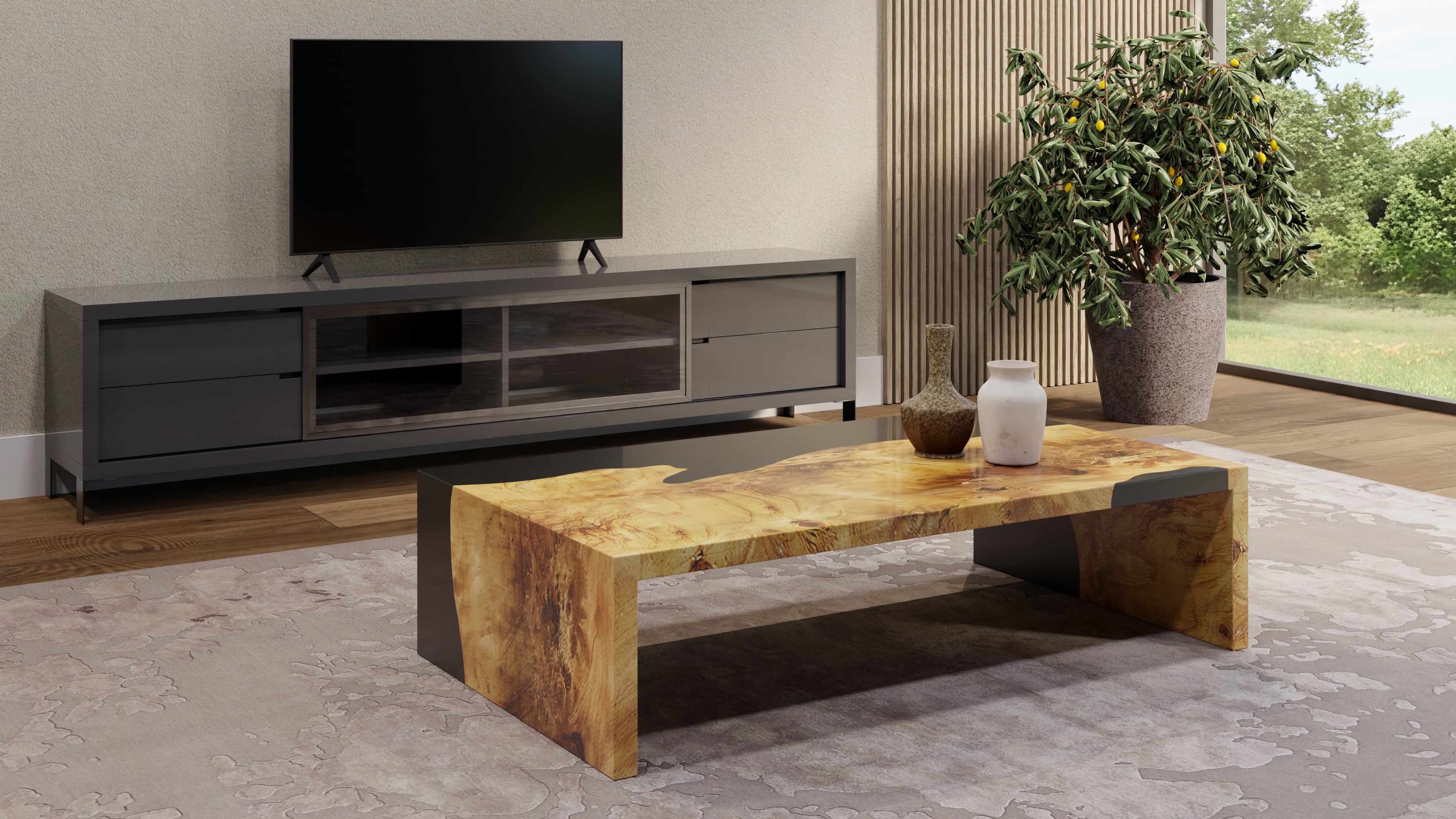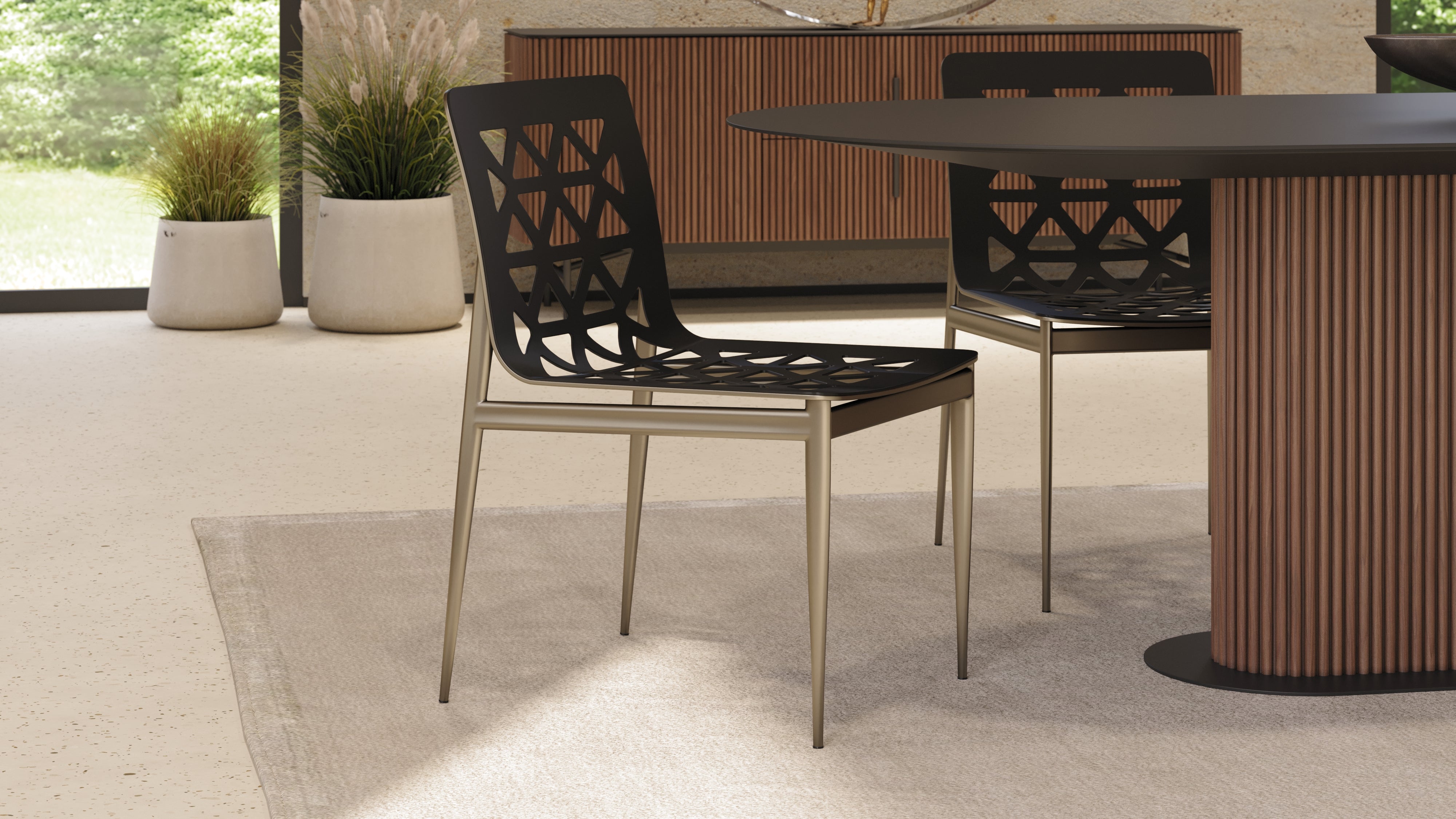 - Gray lacquer dining table