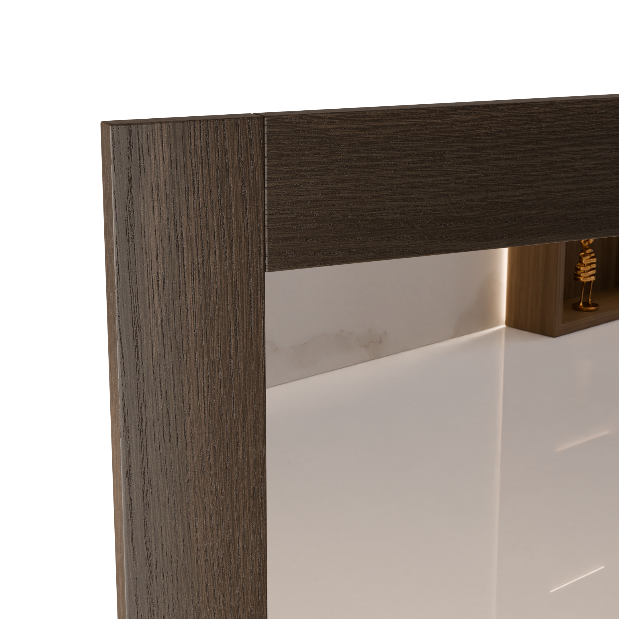 - Complete your modern bedroom with this walnut framed mirror.