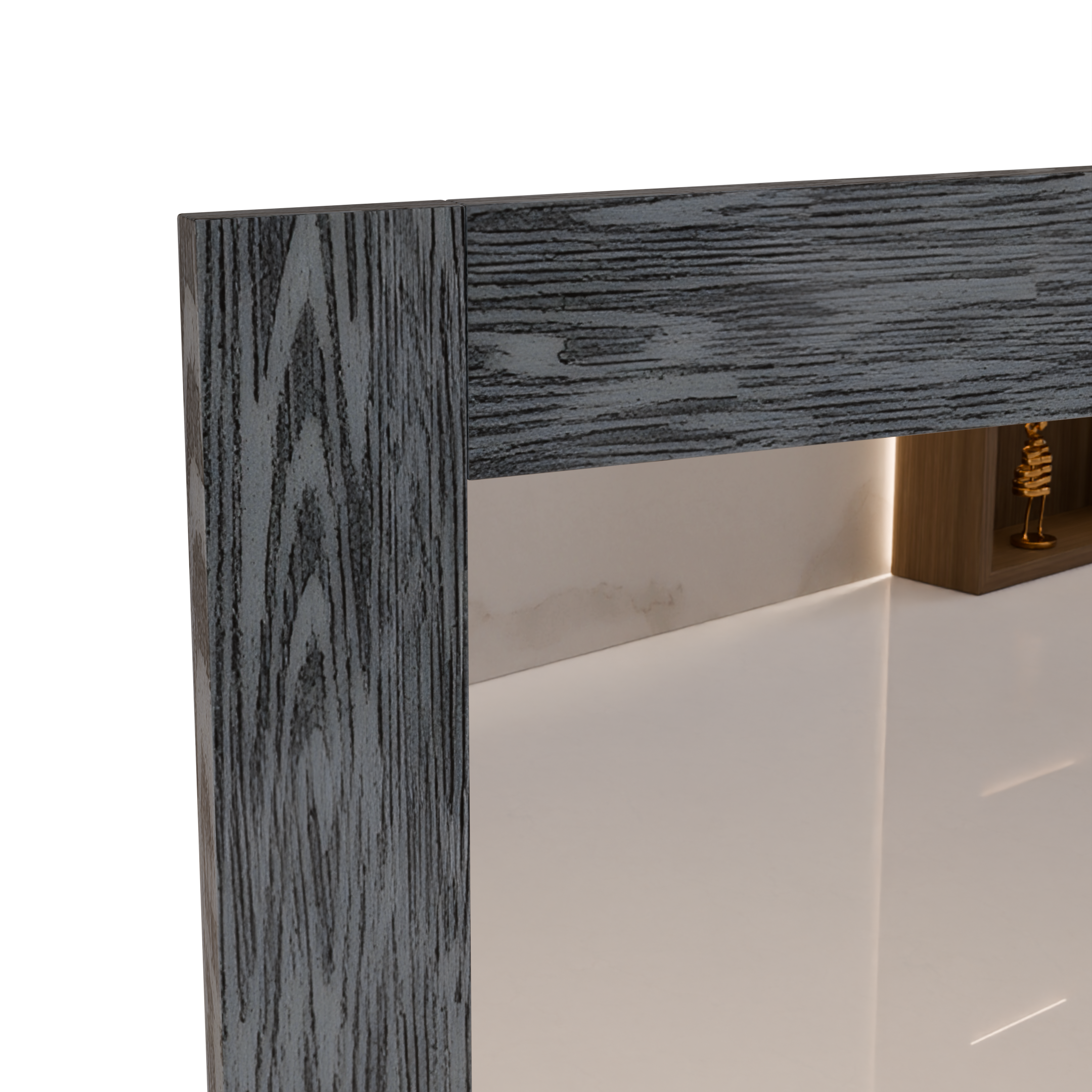 This floor standing Novo Mirror is a surefire way to add personality and modern flair to any bedroom. It measures well over six feet in height, making it appropriate for use by people of all sizes. The smooth reflected surface is framed on all sides by beautiful wood or lacquer.